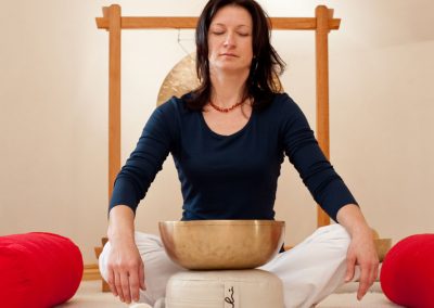 Durch eine kurze Unterbrechung der Arbeit wird die Aufmerksamkeit auf die Töne und Schwingungen der Klangschalen gerichtet. Unterschiedliche Klangmethoden kommen zur Anwendung.